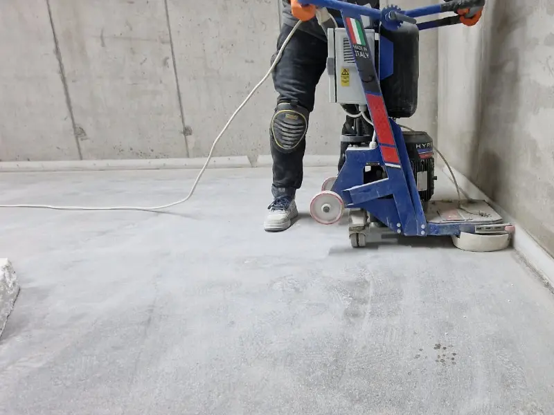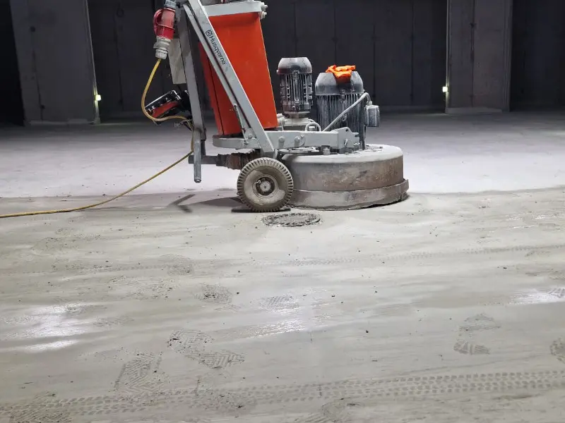 Slefuirea unei pardoseli din beton uscat, situat într-o paracare auto subterană. Pardoseală pe care s-au depus pete de ciment, urme de lavabil iar in anumite zone elicopterizarea nu a fost făcută corespunzător. Șlefuirea stratului suport are ca scop inlăturarea...